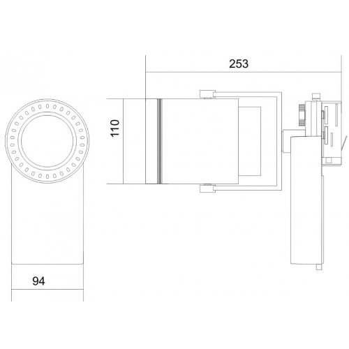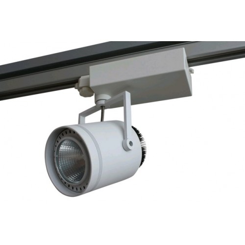Трековый LED-светильник. Литой алюминиевый корпус c охлаждающим радиатором. Отражатель из полимера с металлическим напылением. Рассеиватель из прозрачного стекла. В комплект входит драйвер, светодиод, коннектор для шинопровода. Угол поворота светильника по горизонтальной оси 170° и 360° по вертикальной оси.